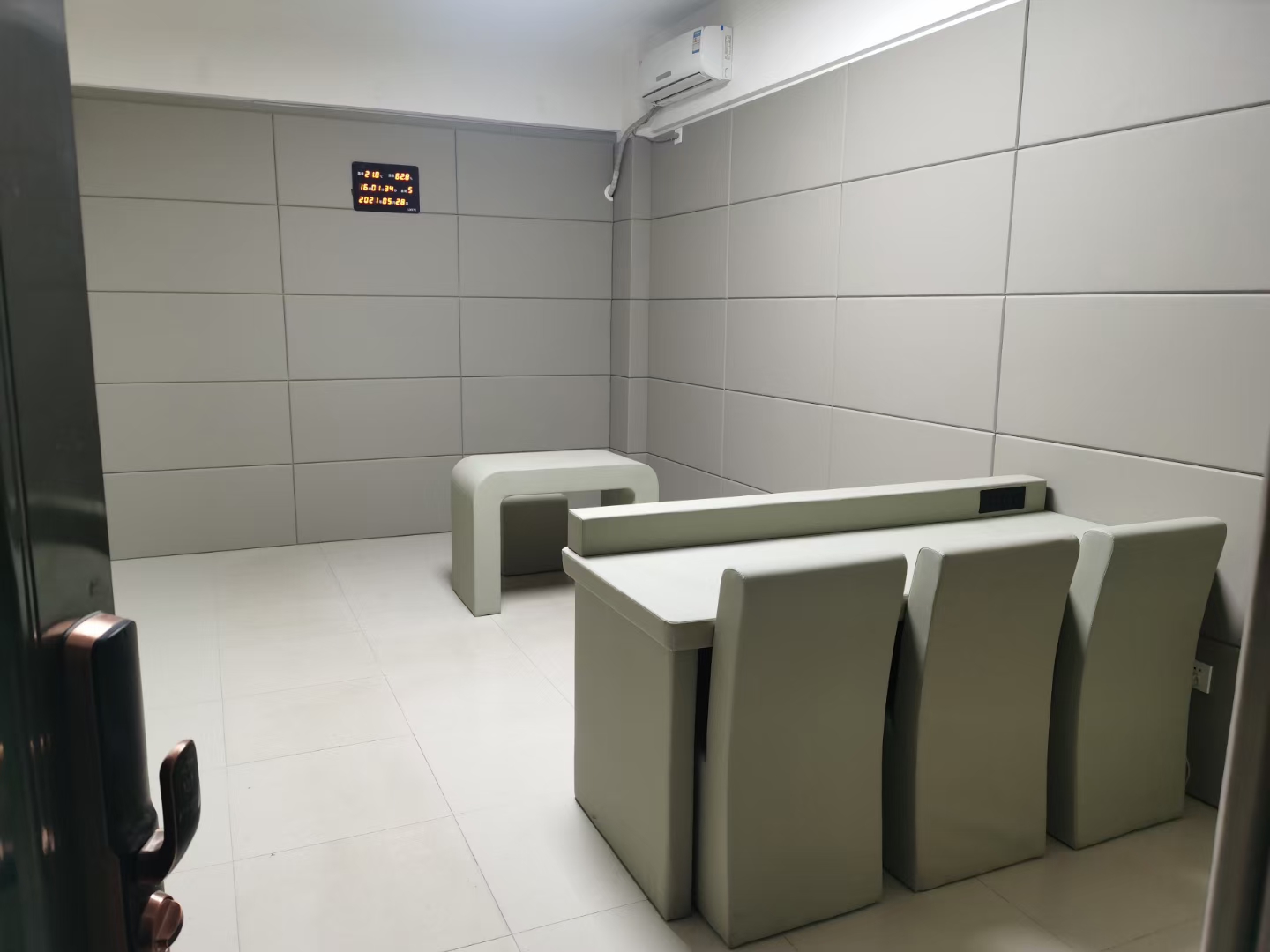 防撞软包板吸音性:吸声频谱高,对低、中、高频的噪声均有较好的吸声效果。常应用于对派出所、办案区、醒酒室、谈话室、羁押室、看守所、监狱等墙面需要做软化处理的办案场所,起到很好的防撞作用,不产生回音、噪音。 阻燃环保,在达到执 法场所的需求外,还有着装饰美观作用。